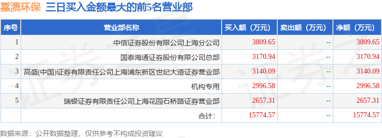 证券之星消息,沪深交易所2025年9月9日公布的交易公开信息显示,嘉澳环保(603822)因非ST、*ST和S证券连续三个交易日内收盘价格涨幅偏离值累计达到20%的证券登上龙虎榜。此次是近5个交易日内第1次上榜。