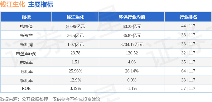 钱江生化2025年中报显示,公司主营收入7.8亿元,同比下降9.64%;归母净利润1.07亿元,同比上升30.24%;扣非净利润5674.17万元,同比下降29.39%;其中2025年第二季度,公司单季度主营收入4.02亿元,同比下降17.8%;单季度归母净利润7661.54万元,同比上升43.28%;单季度扣非净利润2843.04万元,同比下降46.58%;负债率47.98%,投资收益4612.38万元,财务费用2893.42万元,毛利率25.96%。钱江生化(600796)主营业务:主营业务包括环保工程、废弃物清运及处置、热电业务、生物制品、污水处理及再生利用、水处理及供应。