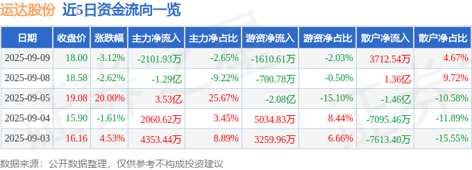 9月9日的资金流向数据方面,主力资金净流出2101.93万元,占总成交额2.65%,游资资金净流出1610.61万元,占总成交额2.03%,散户资金净流入3712.54万元,占总成交额4.67%。
