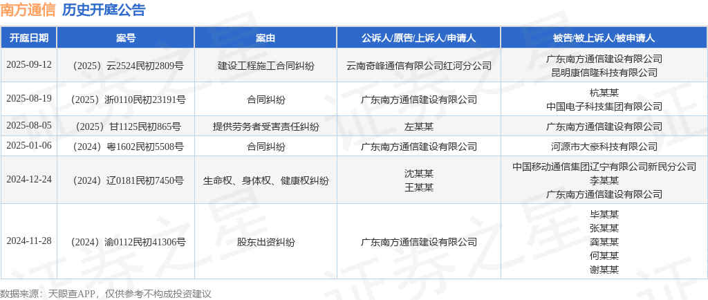 证券之星消息,根据天眼查APP显示,近日公布了一则广东南方通信建设有限公司作为被告/被上诉人的开庭公告,详细内容如下: