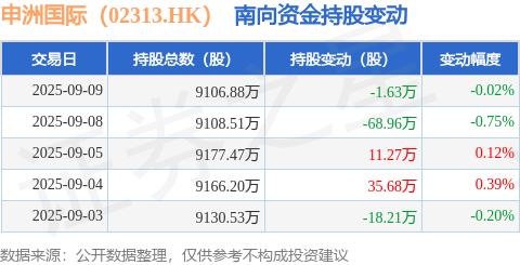 证券之星消息,9月9日南向资金减持1.63万股申洲国际(02313.HK)。近5个交易日中,获南向资金减持的有3天,累计净减持41.85万股。近20个交易日中,获南向资金增持的有13天,累计净增持224.04万股。截至目前,南向资金持有申洲国际(02313.HK)9106.88万股,占公司已发行普通股的6.05%。