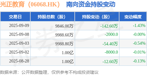 证券之星消息,9月9日南向资金减持142.6万股光正教育(06068.HK)。近5个交易日中,获南向资金减持的有5天,累计净减持210.6万股。近20个交易日中,获南向资金减持的有20天,累计净减持1904.6万股。截至目前,南向资金持有光正教育(06068.HK)9846.0万股,占公司已发行普通股的4.52%。