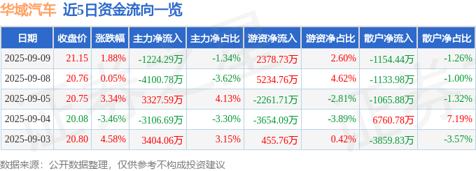证券之星消息,截至2025年9月9日收盘,华域汽车(600741)报收于21.15元,上涨1.88%,换手率1.37%,成交量43.23万手,成交额9.14亿元。
