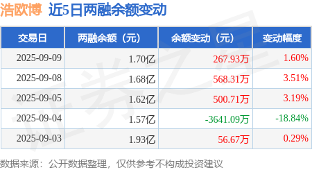 证券之星消息,9月9日,浩欧博(688656)融资买入6270.75万元,融资偿还6002.82万元,融资净买入267.93万元,融资余额1.7亿元,近3个交易日已连续净买入累计1336.95万元。
