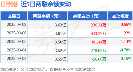 证券之星消息,9月9日,日照港(600017)融资买入1357.72万元,融资偿还1126.72万元,融资净买入231.0万元,融资余额3.62亿元,近3个交易日已连续净买入累计1075.97万元,近20个交易日中有12个交易日出现融资净买入。