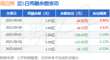 证券之星消息,9月9日,瑞迈特(301367)融资买入758.0万元,融资偿还673.63万元,融资净买入84.36万元,融资余额1.06亿元。