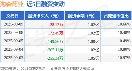 证券之星消息,9月9日,海森药业(001367)融资买入311.66万元,融资偿还283.53万元,融资净买入28.12万元,融资余额1.02亿元,近20个交易日中有11个交易日出现融资净买入。