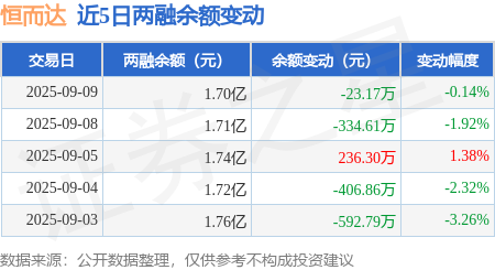 证券之星消息,9月9日,恒而达(300946)融资买入1335.19万元,融资偿还1358.36万元,融资净卖出23.16万元,融资余额1.7亿元。