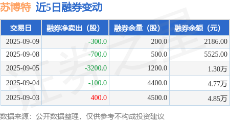 证券之星消息,9月9日,苏博特(603916)融资买入404.76万元,融资偿还464.35万元,融资净卖出59.59万元,融资余额1.39亿元。