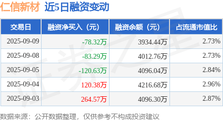 证券之星消息,9月9日,仁信新材(301395)融资买入299.84万元,融资偿还378.16万元,融资净卖出78.32万元,融资余额3934.44万元,近20个交易日中有11个交易日出现融资净买入。