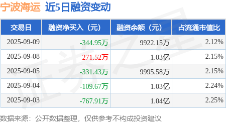 证券之星消息,9月9日,宁波海运(600798)融资买入852.22万元,融资偿还1197.17万元,融资净卖出344.95万元,融资余额9922.15万元。