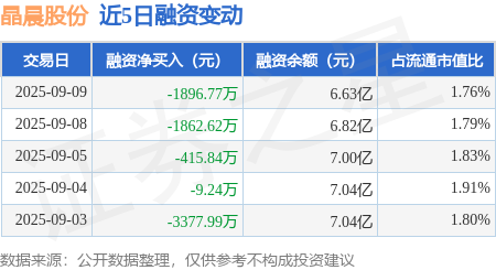 证券之星消息,9月9日,晶晨股份(688099)融资买入3984.74万元,融资偿还5881.51万元,融资净卖出1896.77万元,融资余额6.63亿元。