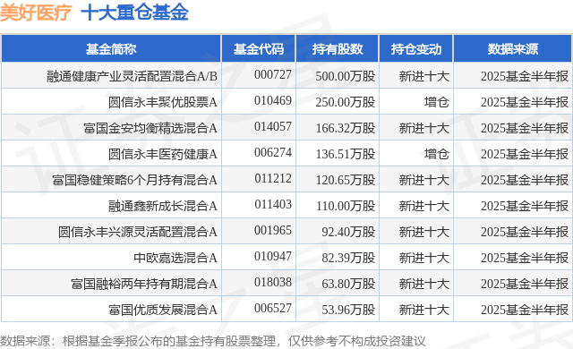 重仓美好医疗的前十大公募基金请见下表: