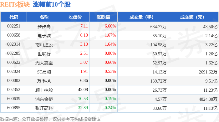 证券之星消息,9月10日REITs板块较上一交易日上涨0.11%,步步高领涨。当日上证指数报收于3812.22,上涨0.13%。深证成指报收于12557.68,上涨0.38%。REITs板块个股涨跌见下表: