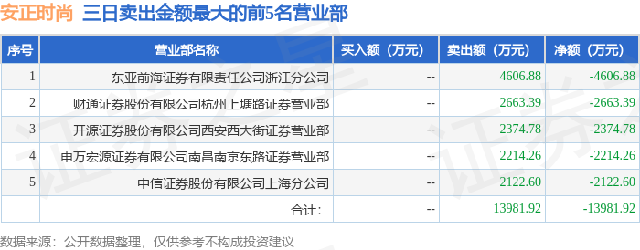 证券之星消息,沪深交易所2025年9月10日公布的交易公开信息显示,安正时尚(603839)因非ST、*ST和S证券连续三个交易日内收盘价格跌幅偏离值累计达到20%的证券登上龙虎榜。此次是近5个交易日内第4次上榜。