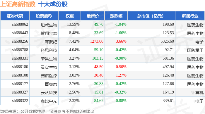 证券之星消息,9月10日,上证高新(000131)指数报收于3854.78点,跌0.02%,成交498.8亿元,换手率2.02%。当日该指数成份股中,上涨的有21家,当虹科技以7.29%的涨幅领涨,下跌的有28家,微芯生物以3.29%的跌幅领跌。