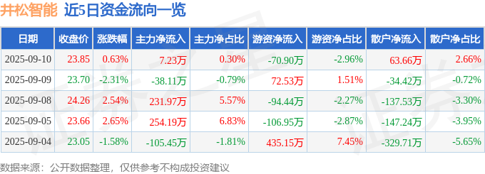 9月10日的资金流向数据方面,主力资金净流入7.23万元,占总成交额0.3%,游资资金净流出70.9万元,占总成交额2.96%,散户资金净流入63.66万元,占总成交额2.66%。