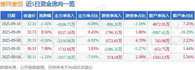 证券之星消息,截至2025年9月10日收盘,壹网壹创(300792)报收于32.22元,下跌1.56%,换手率9.88%,成交量20.99万手,成交额6.86亿元。