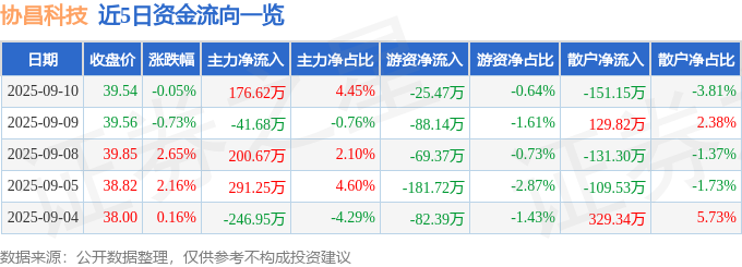 9月10日的资金流向数据方面,主力资金净流入176.62万元,占总成交额4.45%,游资资金净流出25.47万元,占总成交额0.64%,散户资金净流出151.15万元,占总成交额3.81%。