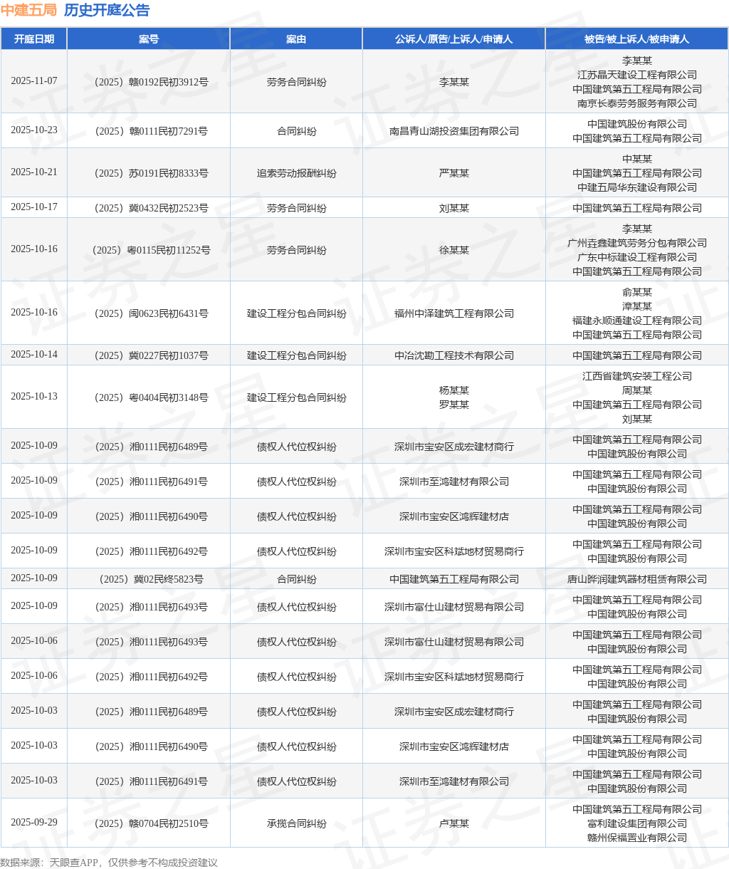 证券之星消息,根据天眼查APP显示,近日公布了一则中国建筑第五工程局有限公司作为被告/被上诉人的开庭公告,详细内容如下: