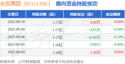 证券之星消息,9月10日南向资金增持4.4万股长实集团(01113.HK)。近5个交易日中,获南向资金减持的有3天,累计净减持12.1万股。近20个交易日中,获南向资金增持的有12天,累计净增持164.4万股。截至目前,南向资金持有长实集团(01113.HK)1.17亿股,占公司已发行普通股的3.34%。