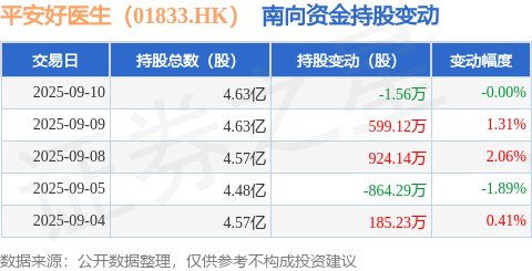 证券之星消息,9月10日南向资金减持1.56万股平安好医生(01833.HK)。近5个交易日中,获南向资金增持的有3天,累计净增持842.64万股。近20个交易日中,获南向资金增持的有16天,累计净增持7389.48万股。截至目前,南向资金持有平安好医生(01833.HK)4.63亿股,占公司已发行普通股的21.43%。