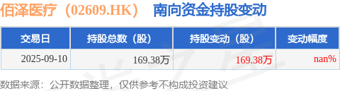 证券之星消息,9月10日南向资金增持169.38万股佰泽医疗(02609.HK)。截至目前,南向资金持有佰泽医疗(02609.HK)169.38万股,占公司已发行普通股的0.12%。