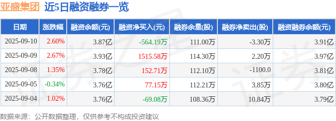 亚盛集团融资融券信息显示,融资方面,当日融资买入6974.67万元,融资偿还7538.86万元,融资净偿还564.19万元。融券方面,融券卖出1.04万股,融券偿还4.34万股,融券余量111.0万股,融券余额350.76万元。融资融券余额3.91亿元。