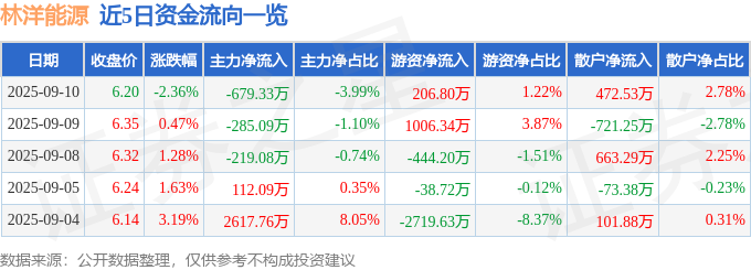 证券之星消息,截至2025年9月10日收盘,林洋能源(601222)报收于6.2元,下跌2.36%,换手率1.33%,成交量27.35万手,成交额1.7亿元。