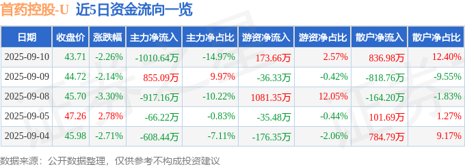 证券之星消息,截至2025年9月10日收盘,首药控股(688197)报收于43.71元,下跌2.26%,换手率2.38%,成交量1.52万手,成交额6751.03万元。
