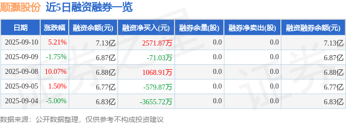 顺灏股份融资融券信息显示,融资方面,当日融资买入5465.2万元,融资偿还2893.33万元,融资净买入2571.87万元。融券方面,融券卖出0.0股,融券偿还0.0股,融券余量0.0股,融券余额0.0万元。融资融券余额7.13亿元。