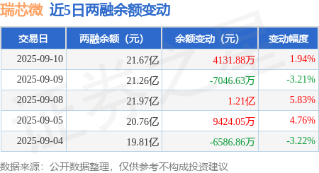 证券之星消息,9月10日,瑞芯微(603893)融资买入2.95亿元,融资偿还2.56亿元,融资净买入3878.5万元,融资余额21.49亿元,近20个交易日中有14个交易日出现融资净买入。