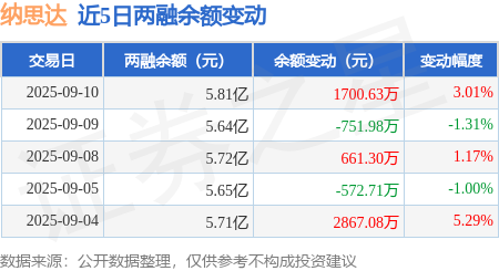 证券之星消息,9月10日,纳思达(002180)融资买入3642.75万元,融资偿还1937.75万元,融资净买入1705.0万元,融资余额5.78亿元。
