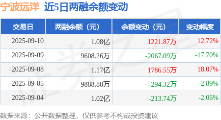 证券之星消息,9月10日,宁波远洋(601022)融资买入2556.58万元,融资偿还1335.29万元,融资净买入1221.3万元,融资余额1.08亿元。
