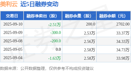 证券之星消息,9月10日,美利云(000815)融资买入3718.78万元,融资偿还2955.33万元,融资净买入763.45万元,融资余额5.3亿元,近20个交易日中有11个交易日出现融资净买入。