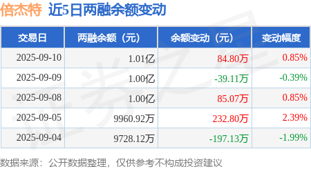 证券之星消息,9月10日,倍杰特(300774)融资买入542.39万元,融资偿还457.58万元,融资净买入84.8万元,融资余额1.01亿元。