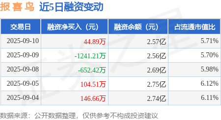 证券之星消息,9月10日,报 喜 鸟(002154)融资买入435.78万元,融资偿还390.89万元,融资净买入44.89万元,融资余额2.57亿元,近20个交易日中有14个交易日出现融资净买入。