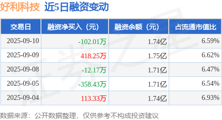 证券之星消息,9月10日,好利科技(002729)融资买入619.18万元,融资偿还721.19万元,融资净卖出102.01万元,融资余额1.74亿元。