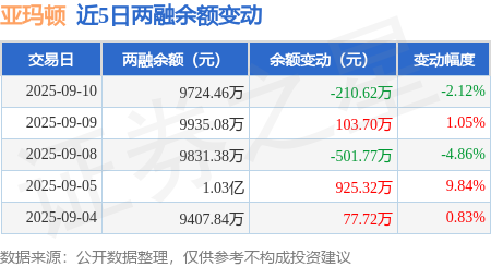 证券之星消息,9月10日,亚玛顿(002623)融资买入970.31万元,融资偿还1180.93万元,融资净卖出210.62万元,融资余额9724.23万元。