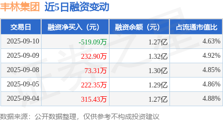 证券之星消息,9月10日,丰林集团(601996)融资买入858.22万元,融资偿还1377.31万元,融资净卖出519.09万元,融资余额1.27亿元。