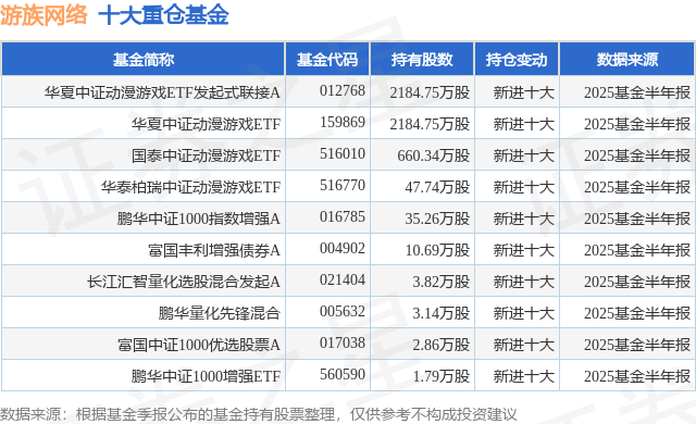 重仓游族网络的前十大公募基金请见下表:
