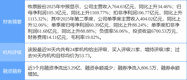2025年8月21日,东莞证券研究员魏红梅发布了对牧原股份的研报《2025年中报点评:出栏量和屠宰量保持快增》,该研报对牧原股份给出“买入”评级。研报中预计公司2025-2026年EPS分别为3.60元、4.23元,维持对公司“买入”评级。证券之星数据中心根据近三年发布的研报数据计算,该研报作者对此股的盈利预测准确度为50.69%。