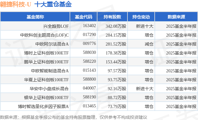 重仓翱捷科技-U的前十大公募基金请见下表: