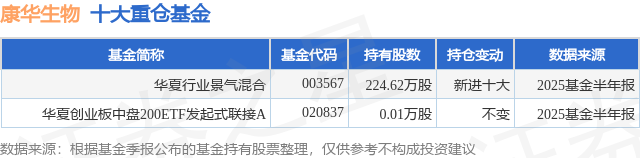 根据2025基金半年报公募基金重仓股数据,重仓该股的公募基金共2家,其中持有数量最多的公募基金为华夏基金的华夏行业景气混合。华夏行业景气混合目前规模为72.61亿元,最新净值4.4144(9月10日),较上一交易日上涨1.66%,近一年上涨92.97%。该公募基金现任基金经理为钟帅。钟帅在任的基金产品包括:华夏远见成长一年持有混合A,管理时间为2022年9月20日至今,期间收益率为25.74%;华夏招鑫鸿瑞混合A,管理时间为2024年1月16日至今,期间收益率为91.96%;华夏卓越成长混合A,管理时间为2025年8月12日至今,期间收益率为3.73%。