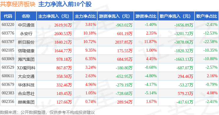 从资金流向上来看,当日共享经济板块主力资金净流出7.2亿元,游资资金净流出3345.86万元,散户资金净流入7.53亿元。共享经济板块个股资金流向见下表: