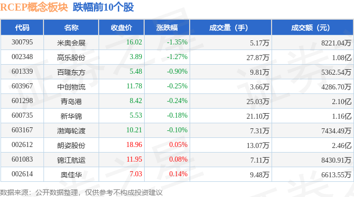 从资金流向上来看,当日RCEP概念板块主力资金净流入2110.35万元,游资资金净流出6918.4万元,散户资金净流入4808.05万元。RCEP概念板块个股资金流向见下表: