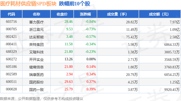证券之星消息,9月11日医疗耗材供应链SPD板块较上一交易日上涨0.81%,柳药集团领涨。当日上证指数报收于3875.31,上涨1.65%。深证成指报收于12979.89,上涨3.36%。医疗耗材供应链SPD板块个股涨跌见下表: