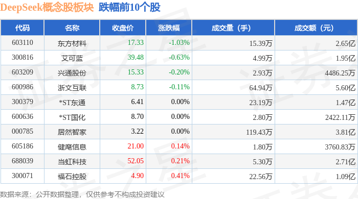 从资金流向上来看,当日DeepSeek概念股板块主力资金净流入40.48亿元,游资资金净流出20.36亿元,散户资金净流出20.12亿元。DeepSeek概念股板块个股资金流向见下表: