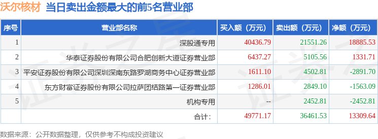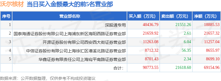 从龙虎榜公布的当日买卖数据来看,机构合计净卖出2452.81万元,北向资金合计净买入1.89亿元。章盟主、炒股养家等知名游资榜上有名。(知名游资章盟主一般指国泰海通证券股份有限公司上海浦东新区海阳西路证券营业部席位、知名游资炒股养家一般指华鑫证券有限责任公司上海宛平南路证券营业部席位,根据市场资料整理,仅供参考)