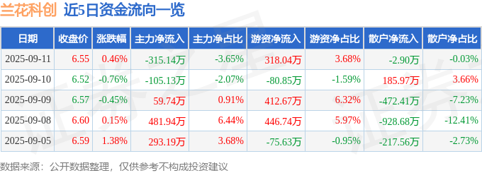 证券之星消息,截至2025年9月11日收盘,兰花科创(600123)报收于6.55元,上涨0.46%,换手率0.9%,成交量13.26万手,成交额8634.62万元。